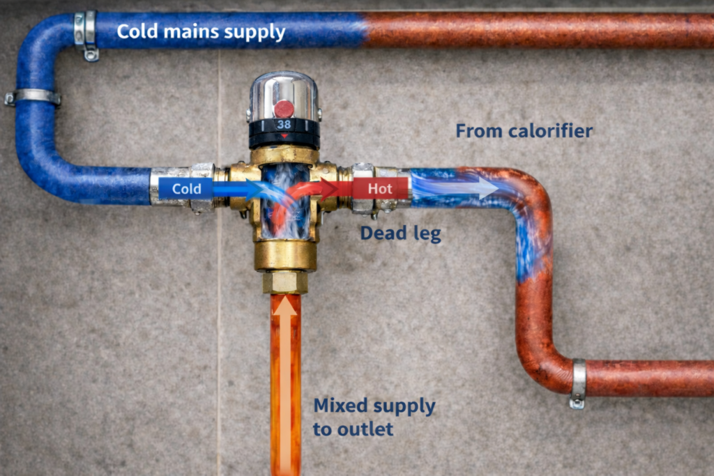 TMVs may be point-of-use devices, but their failure can have system-wide consequences. Passing cold into hot or hot into cold undermines temperature control, disrupts circulation, encourages biofilm formation, and significantly increases the risk of Legionella colonisation.