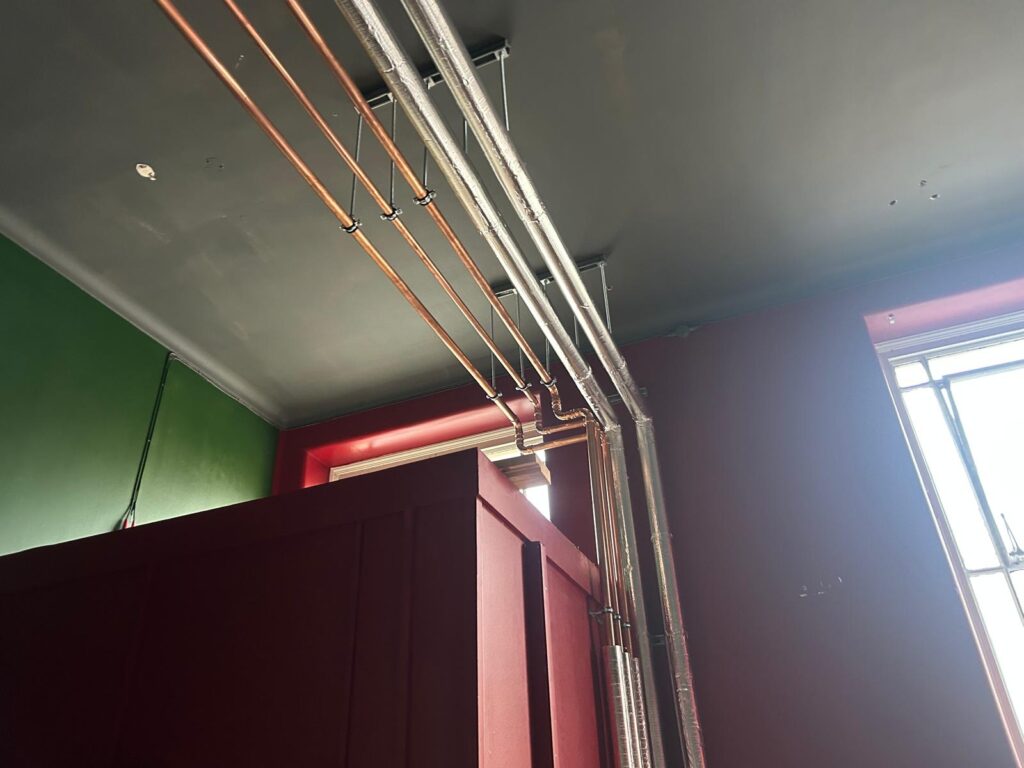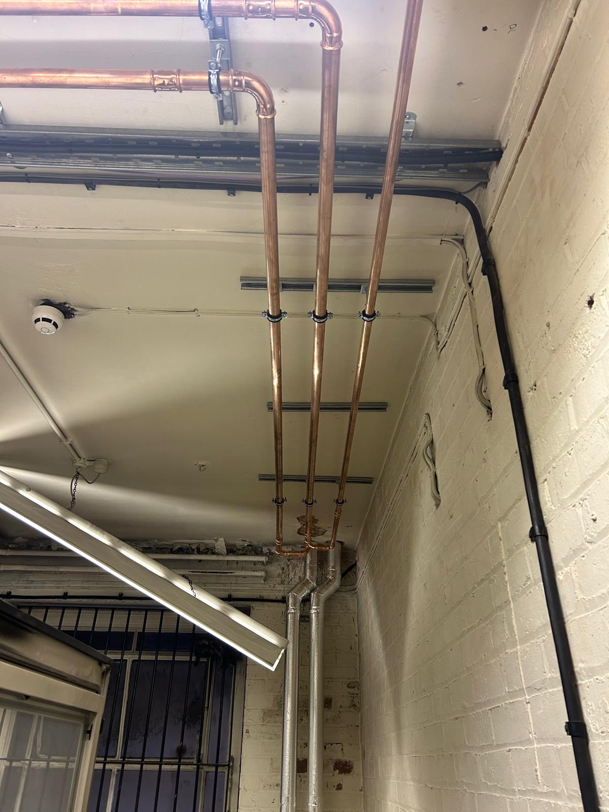 From high-level containment routes to the more intricate pipework arrangements within the plant room, precision has been central to every stage of the installation. Attention to detail, alignment, support spacing, insulation preparation, and overall presentation have all been key focuses for our engineers.