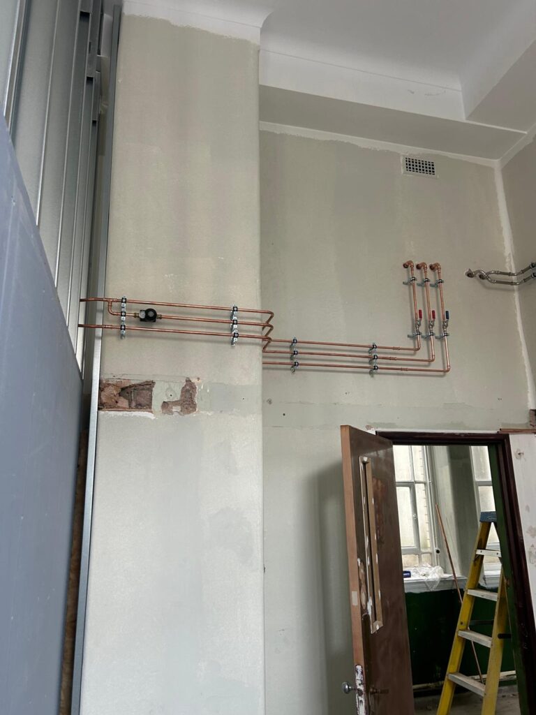 This phase of the project represents a key milestone in the overall development and includes the installation of a complete new hot and cold water system designed to serve the building efficiently and reliably for years to come.